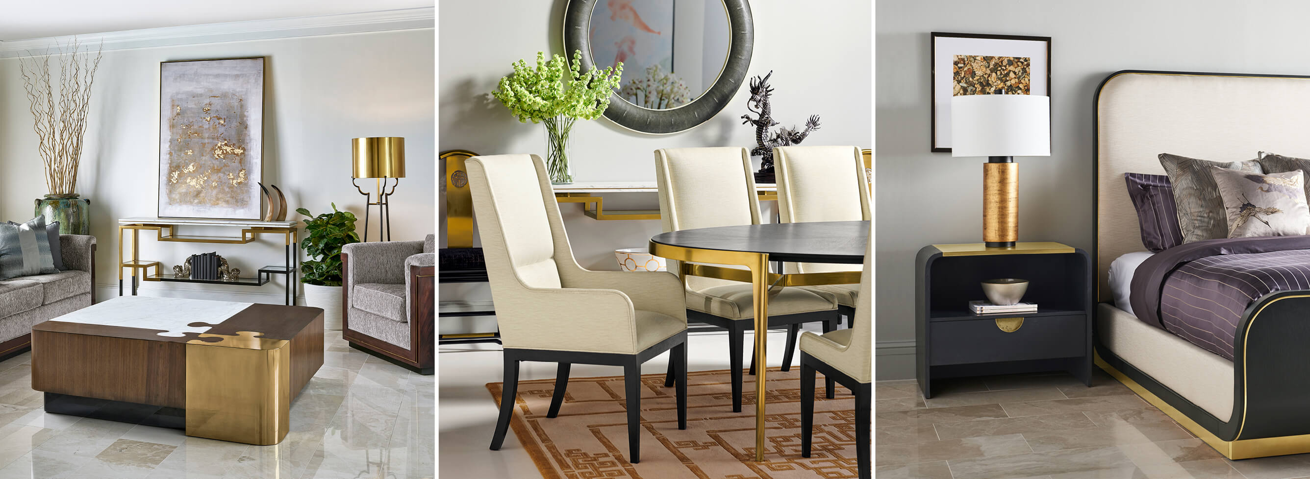 Dresser is constructed of hardwood with an ebonized finish. Top features a brass insert with a satin finish. Six drawers include a soft close mechanism...