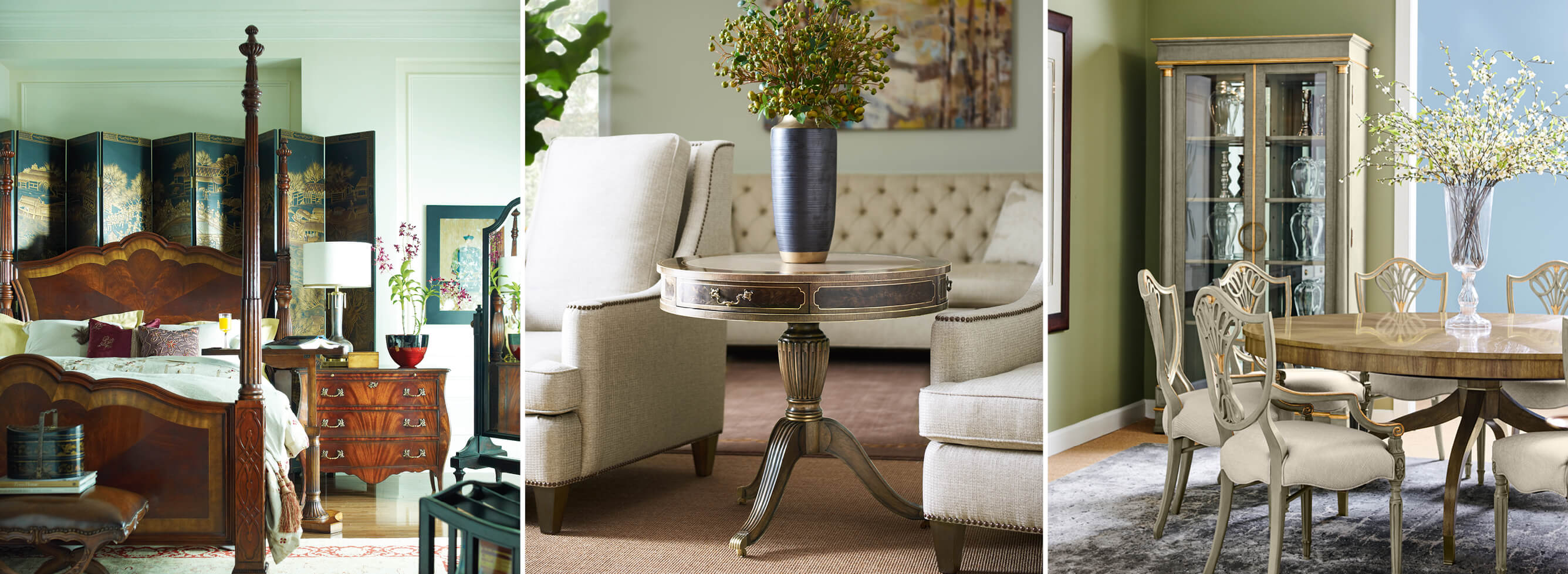 Jonathan Charles Flux lacquer etagere captures the essence of old world drama and modern luxury. Saturated in seductive antique mahogany lacquer, the solid hardwood case features two double drawer shelves and lip that beg to be laden with a decanter set and fine bottles of exquisite spirits. A floo..
