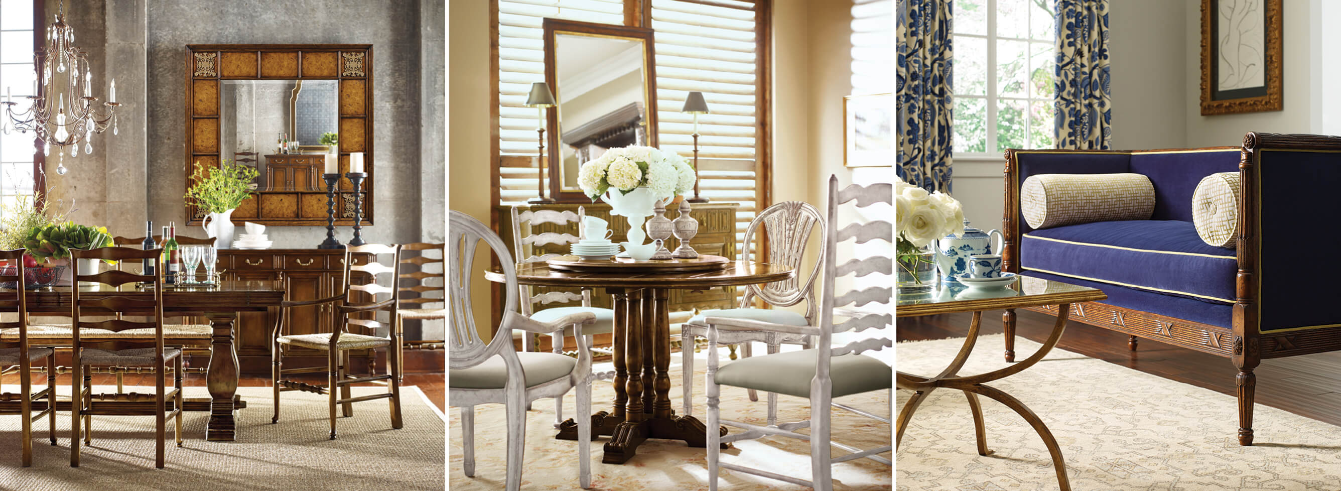 The country hunt table is a masterpiece of old world charm and modern functionality. Built by Jonathan Charles renowned furniture craftsman, the planked walnut top is composed of three hinged panels that allow for different configurations and uses. A classical hand carved medium walnut base adds ti..